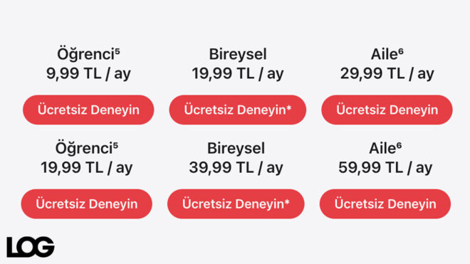 Daha önce Apple Music abonelik ücretleri Türkiye’de öğrenci paketi için aylık 9,99 TL seviyesinde yer alıyordu. Normal bireysel abonelik aylık 19,99 TL seviyesindeydi. Aile paketi ise aylık 29,99 TL‘ye alınabiliyordu. Yeni yapılan zam sonrasında ise öğrenci aboneliği aylık 19,99 TL, normal abonelik aylık 39,99 TL, aile aboneliği ise aylık 59,99 TL oldu. Apple yakın zaman önce oyun odaklı Arcade servisi için de zam yapmıştı. Zam ile beraber servisin aylık ücreti Türkiye’de 34,99 TL’den 69,99 TL’ye çıkarılmıştı.