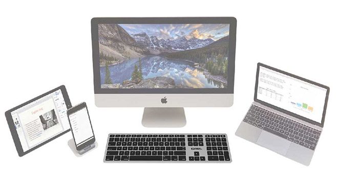 Tasarım olarak epey sade ve şık olan Kanex MultiSync klavye, iOS ve Mac’e bağlantı kurabiliyor ve üzerinde yer alan tuşlar aracılığıyla uygulamalara ve diğer ayarlara hızlıca erişim sağlanabiliyor. Apple’ın kendi klavyesinde olduğu gibi buradan parlaklık ayarı yapılabiliyor, aramaya ulaşılabiliyor ve ses ayarlanabiliyor. Klavyenin sağ tarafında nümerik tuşlar yer alıyor. Bu tuşların hemen üstünde ise bağlantı seçenekleri bulunuyor. Buradan tek tuşlar cihazlar arasında hızlı geçiş yapılması mümkün oluyor. 1.200 mAh pile sahip olan klavye, 6 ay boyunca yeniden şarja ihtiyaç duymuyor. Pil bittiğinde ise cihazın yan tarafındaki USB girişi aracılığıyla şarj işlemi gerçekleştirilebiliyor. Şarj durumu LED ışık yardımıyla kullanıcıya gösteriliyor ve bu sayede klavye kullanıcıları yarı yolda bırakmıyor. Apple Magic klavye 129 dolar fiyata sahipken Kanex MultiSync klavye sadece 59 dolara satın alınabiliyor.