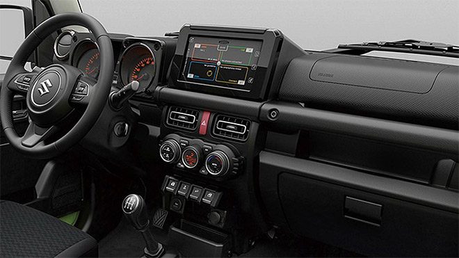 Aracın dış tasarımıyla ilgili en önemli değişimlerinden birisi gövde renginden farklı tonda kombin edilebilen tavanı. Bu sayede çok daha renkli bir karaktere bürünebilen araçta, ızgara ve yuvarlak formlu ışıklandırma grubu ve tamponlarda da güncellemeler dikkat çekiyor. 15 ve 16 inç‘lik jant setleriyle desteklenen bu güncellemelerin var olan versiyona göre Jimny’i çok daha güzel gösterdiğini de belirtmeden geçmeyelim. İçeriye girdiğimizde de sızıntı görsellerinde belirttiğimiz güncellemeler kendisine yer açıyor. Yeni jenerasyon Swift’ten hatırladığımız direksiyon, kadran ve multimedya ekranı büyük oranda benzerlik gösteriyor.