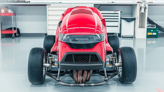 O artık yeni rekortmen; Corvette motoruyla saatte 215 km/s hıza çıkabilen Honda çim biçme makinesi