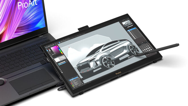 Adobe imzalı yaratıcı yazılımların yeni özelliklerinin tanıtıldığı MAX 2022 etkinliği kapsamında, dünya devi Asus da yer alıyordu. Firma etkinlikte özellikle tasarımcılara hitap eden yeni ProArt ürünleri ile ses getirdi. Burada bizim dikkatimizi en çok çeken seçenek ProArt Display PA169CDV oldu. Yukarıda gördüğünüz 15,6 inç boyuta sahip 4K IPS taşınabilir monitör, Wacom EMR (elektromanyetik titreşim) teknolojisinden yararlanarak ürünle birlikte gelen ProArt Pen kalem ile uyumlu bir şekilde çalışıyor. Bu sayede bu ekranda gelişmiş bir çizim / tasarım deneyimi elde edilebiliyor.