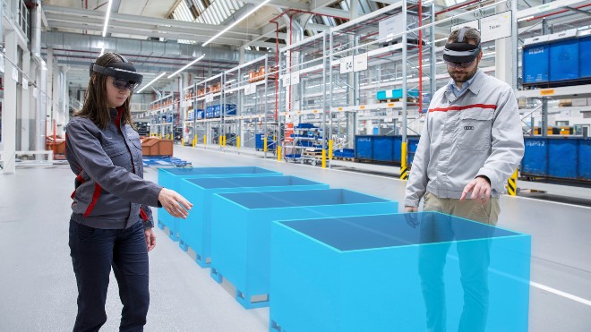 Audi, lojistik süreçlerine “Artırılmış Gerçeklik” teknolojisini dahil ediyor. Konteyner ve diğer taşıma ekipmanlarını artık üç boyutlu hologramlar kullanılarak belirleniyor.