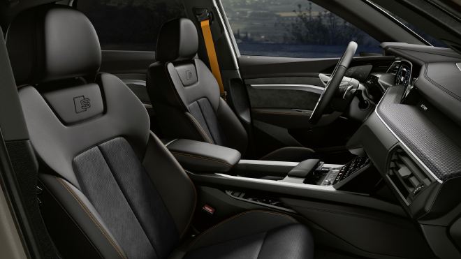 S Line Black Edition paketi e-tron ile sadece üç farklı renk seçeneğiyle kombin edilebiliyor. Beyaz, Gri ve Siyah rengin marka içerisindeki özel versiyonlarıyla bezenecek olan versiyonlarda, aracın belli başlı bölgelerinde karartılmış detaylar ön planda olacak. Izgara, aynalar, çerçeveler ve 21 inçlik jant seti bu pakete özel olarak formüle dahil ediliyor. Tüm bu renk birlikteliğinde kendisini en çok hissettiren ise turuncu olacak.