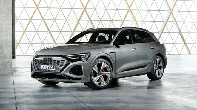 Yeni logoda krom kaplı halkalar yerini, düz beyaz halkalar ve bu halkaları vurgulayan koyu siyah renge bırakıyor. Yeni Logo Q8 e-tron ile başlayarak kullanılacak. Audi, güncellenen logosuyla birlikte yazı tipi stilini standartlaştırıyor artık otomobillerin model varyant bilgileri Audi Type yazı karakteriyle otomobilin B sütunlarında yer alacak.