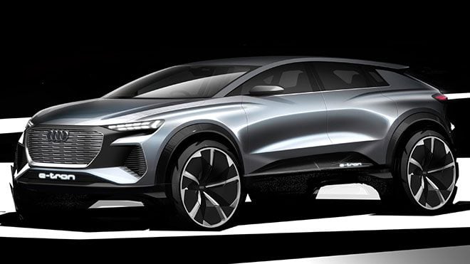 Audi’nin baş tasarımcısı Andreas Mindt, küçük bir elektrikli SUV geliştirilmesine onay verildiğini dile getirmişti. O dönemlerde bir ön tanıtım görüntüsü yayınlanmış olsa da, Alman üretici Audi Q4 e-tron adını verdiği elektrikli otomobil konseptinin taslaklarını kısa bir süre önce paylaştı. Andreas Mindt yeni elektrikli otomobil modelinin Volkswagen Grubu’nun MEB platformu üzerine geliştirileceğini dile getirmişti. Yani Q4 e-tron söz konusu yeni platform üzerine geliştirilen ilk Audi modeli olacak. Mart ayında Cenevre Otomobil Fuarı’nda tanıtılması planlanan konseptin seri üretim versiyonunun ise önümüzdeki yıl hazır olacağı belirtiliyor.