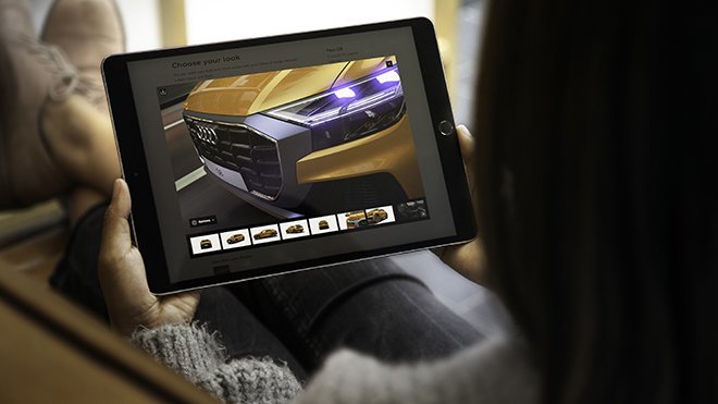 Bu uygulama yüz milyonu aşkın model-donanım kombinasyonunu ekrana getirebilme özelliğine sahip. Müşterinin konfigüre ettiği Audi, yalnızca tek bir tıklamayla bir tünelin içinde ya da İzlanda’nın kırsalı gibi farklı ortamlarda görüntülenebiliyor. Sistemin getirdiği bir diğer yenilik de iç panel kaplamaları, park lambaları ve farlar, açılır tavan gibi en ufak detayların bile etkileşimli olarak görüntülenebilmesi.