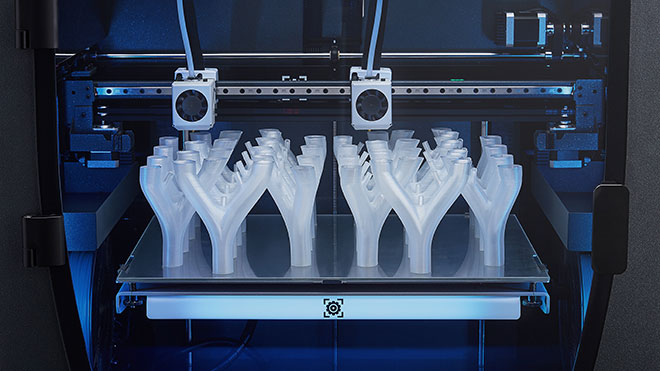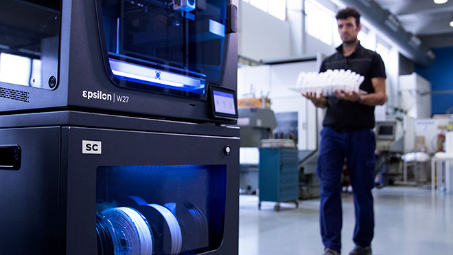 Gelişmiş 3D Yazıcı ayrıca fiber dolgulu malzemelerle sorunsuz baskı yapmak üzere tasarlanmış yeni Hotend X ile güçlendirilebiliyor. Bu, en zorlu uygulamalar için daha sağlam parçaların basılmasını sağlıyor. Epsilon serisi workbench olarak konumlandırılmış, özellikle hızlı prototipleme, düşük adetli seri üretim, sert ve dayanıklı model, üretim hattındaki yedek parça ve kılavuz araçları gibi endüstriyel alandaki ihtiyaçlar için etkili birer çözüm oluşturuyor.