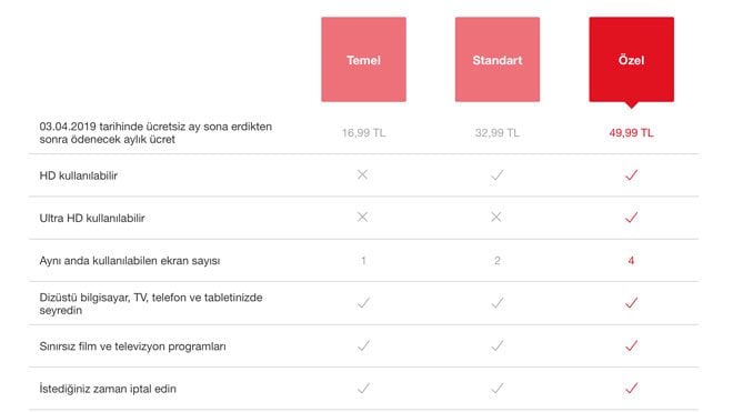 Yeni Netflix Türkiye fiyatları