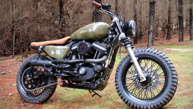 Harley-Davidson Scrambler A-15 adıyla hayata geçirilen projenin mekanik altyapısında 1200cc‘lik bir makine yatıyor. Bu zamana kadar gördüğümüz en etkileyici custom Scrambler projelerinden birisi olan A-15’te kamuflaj ağırlıklı bir renk tercih eden geliştirme ekibi geriye kalan kısımlarda noktasal olarak tamamlayan deri koltuk ve gidonlara yer veriyor. Motosikleti zorlu yol koşullarında da kullanma imkanı sağlayan özel lastiklerin eklenmesiyle birlikte bir anlamda arazi motosikleti haline de gelen A-15’i satın almak içinse ekiple iletişime geçmek gerekiyor. Gasoline Motor ekibinin Harley-Davidson başta olmak üzere birçok önemli marka ve sınıf üzerinde yaptığı projelerin tamamına buradan ulaşabilirsiniz.