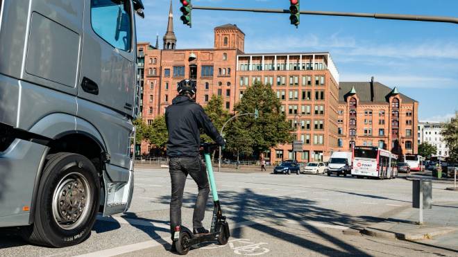 Elektrik dokunuşu üzerinden trafikte varlığını iyice artıran bisiklet ve scooterlar, Mercedes tarafından kamyonlarda sunulan yeni destekle fark edilecek.