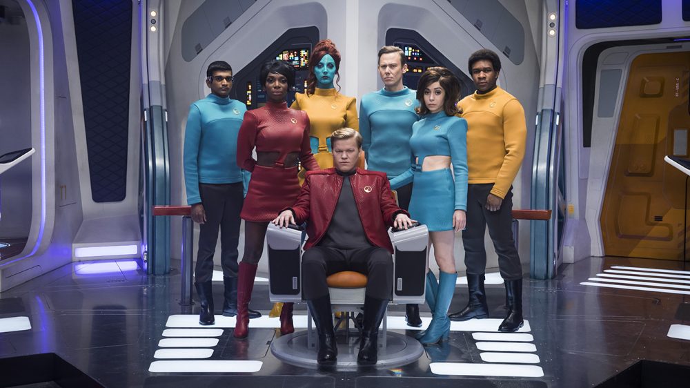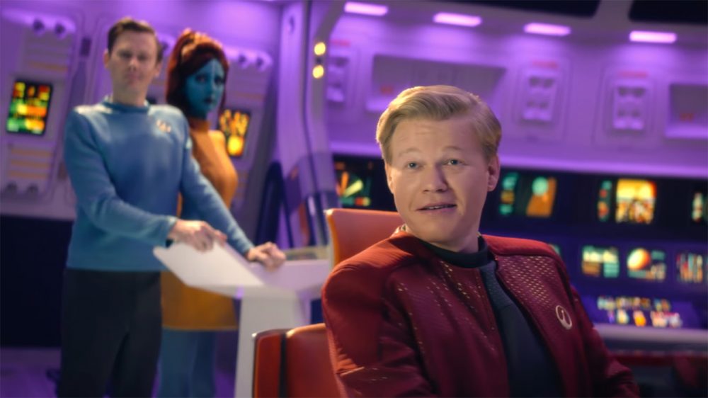 Hatırlayacağınız üzere Black Mirror’ın dördüncü sezonunda izleyeceğimiz bölümlerin ismi kısa bir süre önce belli olmuştu. Dördüncü sezon altı bölümden oluşacak ancak paylaşılan ilk fotoğraflarda sadece iki bölüme dair ipuçları bulabiliyoruz. Fotoğraflardan ilki USS Callister bölümüne ait gibi görünüyor. Bu bölüm Star Trek’ten esinlenilmiş havası veriyor. Üniformalı uzay gemisi mürettebatını hep birlikte poz verirken görüyoruz. İkinci fotoğrafın ise Arkangel adlı bölümden alıntı olduğu anlaşılıyor. Genç anne ve kızını ne gibi tehlikelerin beklediği ise henüz belli değil.