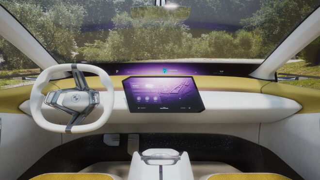 Neue Klasse sadece dış tasarımda değil içeride de bir gelecek gösterimi yapıyor, konsept yeni nesil iDrive teknolojisini de beraberinde getiriyor. Yeni nesil iDrive’ı fiziksel butonlarda oldukça uzaklaştıran BMW, yeni altyapıyı dokunmatik ekranlar ile gerekli bilgilerin ön camın alt kısmına yansıtılması üzerine kuruyor. BMW Türkiye’nin bu sistem hakkında verdiği resmi bilgiler ise şöyle: “Otomobil içinde yer alan geleneksel düğmeler BMW Vision Neue Klasse ile minimum sayıya düşüyor. İnsan-otomobil etkileşimi BMW Panaromic Görüş, Merkezi Ekran ve fonksiyonel direksiyon sayesinde kendini gösteriyor. BMW Kişisel Akıllı Asistan, kullanıcı deneyimini bir üst seviyeye taşırken ilk defa Neue Klasse’de kullanılan BMW Panaromik Görüş BMW iDrive ve BMW Head-Up Display ile bir arada çalışıyor. Sürücünün ideal görüş açısına yansıtılan sürüş bilgileri geliştirilmiş bir BMW Head-Up Display teknolojisini bünyesinde barındırıyor. “