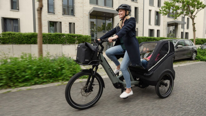 BMW Group, Cube ve SoFlow 2021 yılında karşımıza kargo odaklı bir elektrikli bisiklet ile çıkmıştı. Arkasında yük taşınabilecek bir kasası bulunan bisiklet, o zaman prototip aşamasındaydı ve Internationale Automobil-Ausstellung Mobility 2021 kapsamında sergilenmişti. Bugün ise o prototipin gerçeğe taşındığı duyuruldu. TRIKE FAMILY HYBRID ve TRIKE CARGO HYBRID olmak üzere iki farklı versiyonu olan bisiklet, üç lastik üzerine kurulduğundan herkes için dengeli bir sürüş vadediyor. Özel eğim altyapısı sayesinde viraj dönüşlerinde arka kısmın yatay ya da başka bir deyişle sabit şekilde kalmasını sağlayan bisiklet, istenirse önünde de yük taşıyabiliyor. Aynı temeli paylaşan versiyonlardan FAMILY HYBRID, arkasında iki çocuğun taşınması için özelleştirilmiş durumda. CARGO HYBRID‘in arka bölümü ise direkt olarak kargo taşıma amaçları için tasarlanmış.