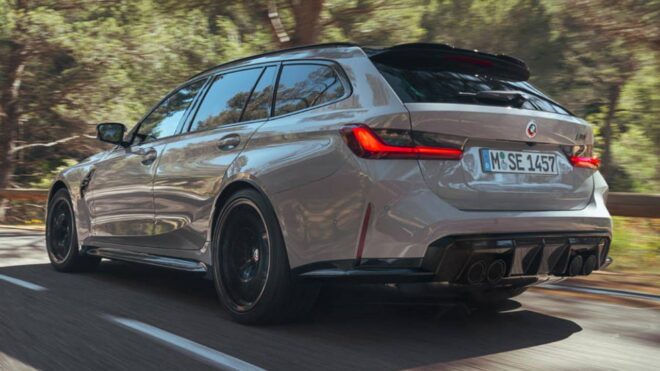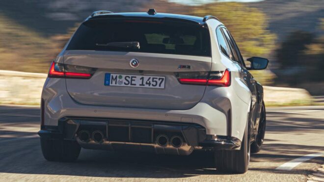 Tüm parçaların bir araya gelmesiyle 0’dan 100’e hızlanmasını 3,6 saniyede tamamlayan modelin maksimum sürat limiti ise 280 km/s olacak. Festival kapsamında performans değerleri kadar egzotik bir pembe renkle görücüye çıkarılan M3 Touring’de 20 inçe kadar yükselebilen jantların tasarımı da üzerinde konuşulmayı kesinlikle hak ediyor. Tamponlar, marşpiyel ve difüzör gibi gövde panelleri de yine M versiyonunu ayırt etmede önemli etken konumunda. M3 Touring için üretim süreci kasım ayından itibaren başlayacak.