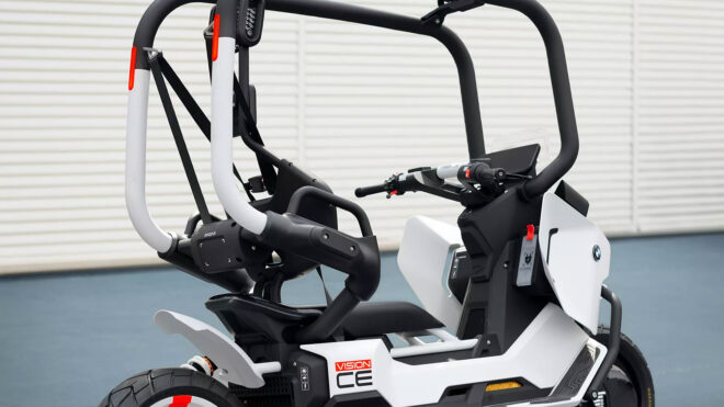 Şirketin hâlihazırda satışı yapılan elektrikli motosikleti CE 04’ü temel alan BMW Motorrad Vision CE, tek kişilik tasarlanmış ve üzerinde LED ışıklarla donatılmış bir “roll cage” (takla kafesi) taşıyor. Sürücüyü dik konumda tutan bir koltuğa yer verilen konsept, genel olarak arazi odaklı ve tamamen elektrikli yapıda. Sabit konumda kendi dengesini kurabildiği açıklanan Motorrad Vision CE konsepti, net bir bilgi yok; ancak önümüzdeki yıllarda satışa sunulabilir.