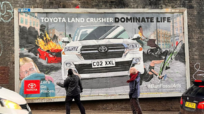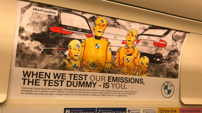BMW ve Toyota halen çok sayıda içten yanmalı motora sahip otomobil modelinin satışını yapıyor. Bunun yanında elektrikli modeller üzerinde de çalışan ikili, bu sefer kendileri için hoş olmayan bir konuda gündemde yer alıyor. Çevreci aktivizm grubu “Brandalism” ve diğerleri, İngiltere ve Avrupa merkezli birçok ülkede özel reklamlar hazırlayarak BMW ve Toyota’ya karşı bir kampanya düzenledi. Bu ilk bakışta firmalardan geliyor gibi görünen reklamlar, “#BanFossilAds (Fosil yakıtlı araç reklamlarını yasaklayın şekilde çevrilebilir)” etiketine sahipler ve firmaların çevre konusundaki yanıltıcı reklamlarını ve iklim politikasına karşı agresif lobi faaliyetlerini eleştiriyor.