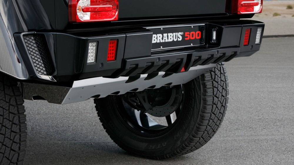 Tasarımda yapılan iyileştirmelerle çok daha güçlü bir görünüme kavuşan G500 4×4²’de karbon fiber detaylar göze çarpıyor. Karbon fiber malzemeden üretilen çamurlukların ve yan aynaların kullanıldığı araçta mevcut modelden daha büyük jantları bünyesinde barındırıyor. Arazi koşullarına uygun şekilde hazırlanan aracın ön tamponun altında ise LED aydınlatma bulunuyor. Tavan kısmında spoiler’ın da yer aldığı aracın kaputunda hava giriş ve çıkışları mevcut. 4 litre hacimli V8 motoruyla 500 beygir güç ve 710 Nm tork üretebilen Mercedes G 500 4×4²’nin saatteki maksimum hızı ise 210 kilometre. 6,9 saniyede saatte 100 kilometre hıza ulaştığı belirtilen araç 7 ileri vitesli otomatik şanzımanla ve dört tekerlekten çekiş sistemiyle birlikte geliyor. İç mekan tasarımına bakıldığında ise Alcantara ve deri döşemeler, metal pedallar ve özel paspas seti gözlerden kaçmıyor. Brabus imzasını taşıyan Mercedes G 500 4×4²’nin satış fiyatı henüz açığa çıkmadı.