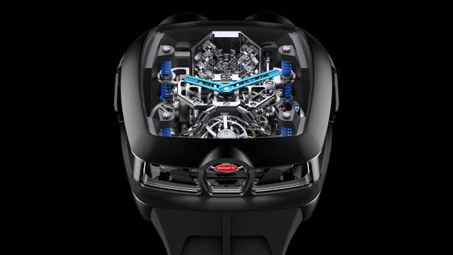 Jacob & Co tarafından sınırlı üretim adetleriyle meraklılarının beğenisine sunulacak Bugatti Chiron saati, aktif motor parçalarıyla kendisine hayran bırakıyor.