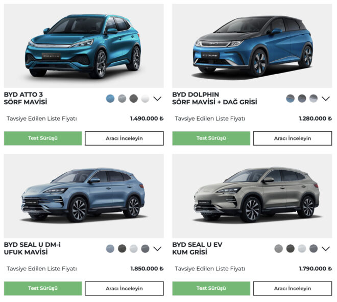 Aralık ayında bayilere geleceği aktarılan 2 milyon 440 bin TL’lik BYD Seal, 0’dan 100 km/s hıza 3,8 saniyede ulaşıyor ve 520 km WLTP karma sürüş menziline sahip bir elektrikli sedan. 3 milyon 200 bin TL’lik amiral gemisi BYD Han ise resmi verilere göre 0’dan 100 km/s hıza 3,9 saniyede ulaşıyor ve 521 km WLTP karma sürüş menzili sunuyor. Elektrikli sedan dört tekerden çekiş sunuyor. Geçtiğimiz haftalarda düzenlenen etkinlikte Türkiye’de satılacak diğer araçların fiyatları açıklanmıştı. BYD Dolphin modeli Türkiye’de 1.280.000 TL, Atto 3 modeli 1.490.000 TL, Seal U EV modeli 1.790.000 TL, Seal U DM-i modeli ise 1.850.000 TL fiyatla satın alınabilecek. Peki bu fiyatlar tüketiciler arasında nasıl bulunmuştu? Hemen herkes fiyatların yüksek olduğunu düşünüyor. Açıklanan fiyatlar hakkında yapılan bir yorum şöyle: “Fiyatlama politikasıyla Türkiye otomotiv pazarı ve yerli üreticiler için risk olmaktan çıkmıştır. Teşviki kendi içlerine yapmışlar herhalde.”