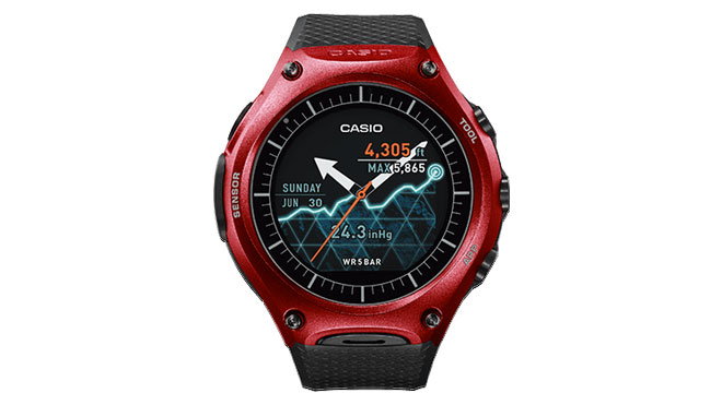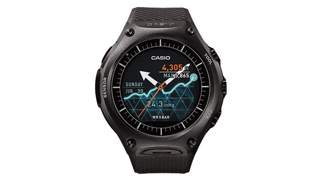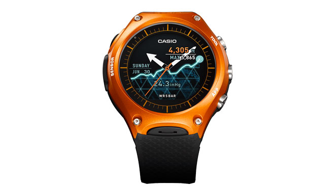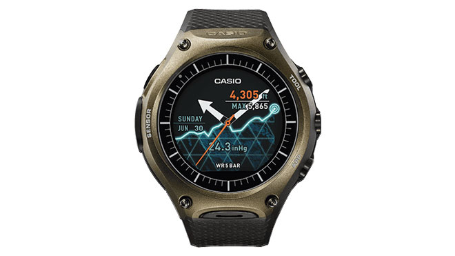 Yeşil, turuncu, siyah ve kırmızı olmak üzere dört çeşidi bulunan Casio WSD-F10, yükseklik ve basınç sensörünün yanı sıra akselerometre, jiroskop ve dijital pusulaya da sahip. Mikrofonu ve titreşim özelliği de bulunan akıllı saat normal kullanımda bir gün pil ömrü vadederken, Timepiece modunda, yani siyah beyaz LCD ekran açık olduğu süre boyunca bir ay şarj etmeden kullanılabiliyor.