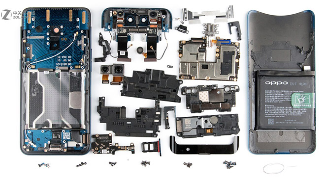 Vivo NEX serisi ile beraber son dönemin gözde modeli Oppo Find X, gerçekten akıllı telefon dünyasının en yenilikçi modelleri arasında yer alıyor. Bunun arkasında da dediğimiz gibi sürgülü kamera modülü yer alıyor. Vivo NEX’den farklı olarak hem üç boyutlu tarama yapabilen ön kamera ve donanımlarına hem de arka kameraya sahip bu modül, MyFixGuide‘ın gösterdiği kadarıyla merkeze yerleştirilen tek bir step motor üzerinden hareket ediyor. Aşağıdaki GIF ile çalışma süreci açıkça görülen mekanizma, kendi bölümleri bulunan ufak kablolar aracılığıyla bağlantıda kalıyor. Yapısı gereği düşmelerde dahi sıkıntı çıkarmayacak gibi duran sistem, “yastıklama” altyapısıyla pürüzsüz bir kaydırmayı her seferinde garanti altına alıyor.