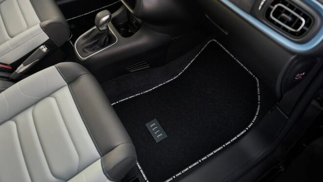 C3’ün bu özel versiyonunda, ELLE logosunun renklerine gönderme yaparak beyaz veya siyah olmak üzere iki tavan rengi seçeneğiyle standart olarak çift renk sunuluyor. Araçta kullanılan siyah ve saflık ile sadeliği simgeleyen beyaz; kum, kutup beyazı, çelik gri, platin gri veya parlak siyah olmak üzere gövde renkleriyle komine edilebiliyor. Citroen C3 ELLE’de ortak bir tema olarak, hem dışarıda hem de içeride, siyah bir şerit üzerinde beyaz harflerle, ELLE marka imzası “1945’ten Beri Ve Sonsuza Dek” ifadesi, farklı noktalarda kullanılıyor. C3 ELLE’de; geri görüş kamerası, anahtarsız giriş-çalıştırma, ısıtmalı ön koltuklar, gelişmiş sürüş destek sistemleri ve 17 inçlik alaşım jantlar da standart geliyor.