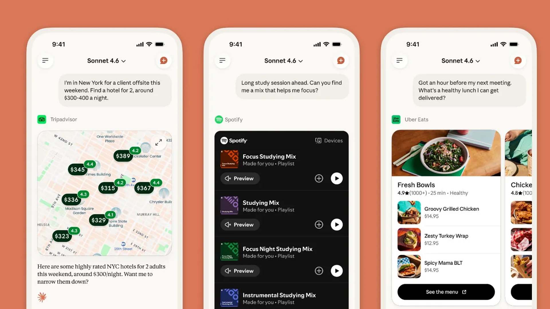Claude artık Spotify ve Uber Eats gibi uygulamalarla da bağlantı kuruyor