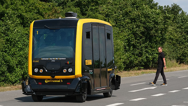 Geleceğin şehirlerinde görev yapacak otonom ulaşım araçları üzerine çalışmalar gerçekleştiren Continental, robo taksiler için geliştirdiği teknolojilerin seri üretimine de başlıyor. Continental’in sürücüsüz araçlar için geliştirdiği teknolojiler ilk kez Fransız şirketi EasyMile’ın EZ10 otonom servis araçları için üretilecek. 2017’den bu yana söz konusu aracın hissedarları arasında yer alan Continental, çalışmalarını ise EZ10 platformlu sürücüsüz bir servis aracı olan CUbE üzerinde gerçekleştiriyor.