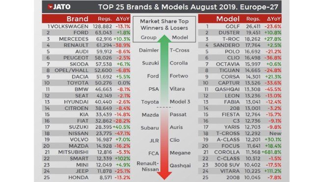 Ağustos ayı başlı olarak açıklanan Avrupa satış rakamlarında, Dacia Duster ve Volkswagen T-Roc isimlerinin ivmelenmesi dikkat çekti.