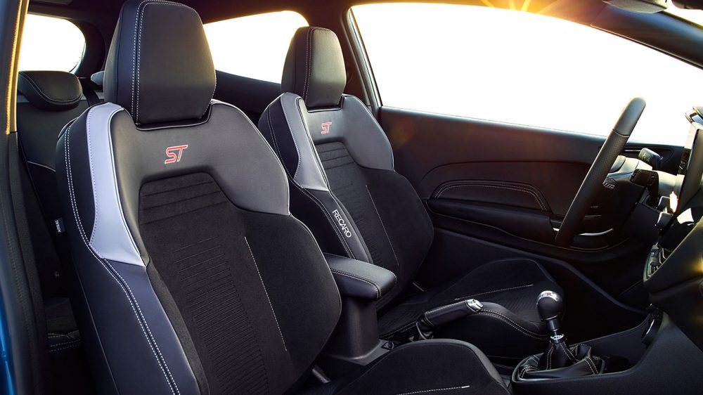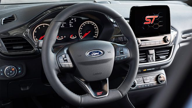 Fiesta ST’nin içerisine girdiğimizde standart modelle birlikte gelen yeni tasarımın önemli performans parçalarıyla harmanlandığını görüyoruz. ST logolu direksiyon ve Recaro spor koltuklar modelin içeride göze çarpan en önemli donanımları olarak gözümüze çarpıyor. Multimedya sistemi ayağında Ford’un geliştirdiği SYNC‘in üçüncü jenerasyonunu barındıran Fiesta ST’de sekiz inçlik dokunmatik bir ekran sunuluyor. Temassız da kontrol edilebilen bu ekran Apple CarPlay and Android Auto desteğine de sahip. Aracın müzik sistemi ayağında standart olarak olmasa da 10 hoparlörlü B&O Play opsiyonu sunulduğunu hatırlatmakta fayda var. Üç kapı ve beş kapı seçeneğiyle birlikte sunulacak olan yeni nesil Fiesta ST ilk kez Cenevre Otomobil Fuarı‘nda kullanıcılarla buluşacakken modelin 2018’in ilk çeyreğinde satışa sunulması bekleniyor.
