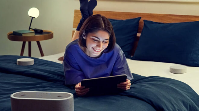 Sony HT-AX7, son dönemde gördüğümüz en farklı ses çözümlerinden oldu. Daha çok ev içi kullanımı odaklanarak hazırlanan bu portatif hoparlör, ana gövdeden ayrılan uydulara sahip. Bu sayede istenilen yere istenildiği şekilde kurulumlar yapılmasına imkan tanıyan cihaz, özellikle tablet kullanıcılarını memnun edebilecek bir seçenek konumunda. Bu sayede tabletten yatağa uzanmış şekilde bir film ya da dizi izlerken, HT-AX7‘i yanınıza alarak etkileyici bir ses deneyimi elde edebiliyorsunuz. Gövdeden ayrılan uydular ile yatakta dahi özel bir algoritma ile güç verilen Spatial Sound Mapping teknolojisiyle 360 derece ses sunabilen model, bağlantıyı kablosuz olarak Bluetooth 5.2 üzerinden yapıyor, birden fazla cihaza bağlanabiliyor ve AAC ile SBC kodeklerini kullanabiliyor.