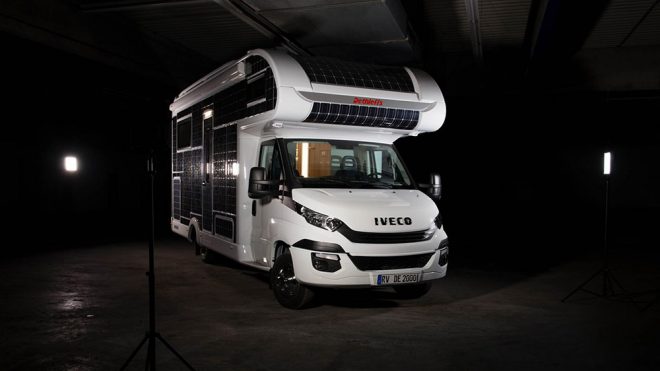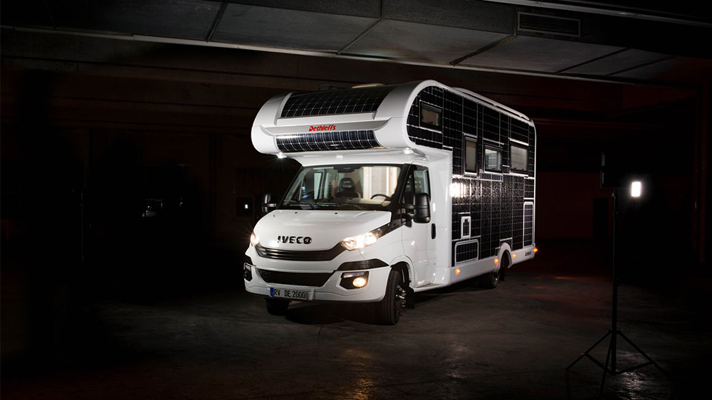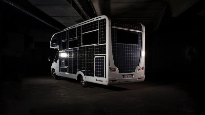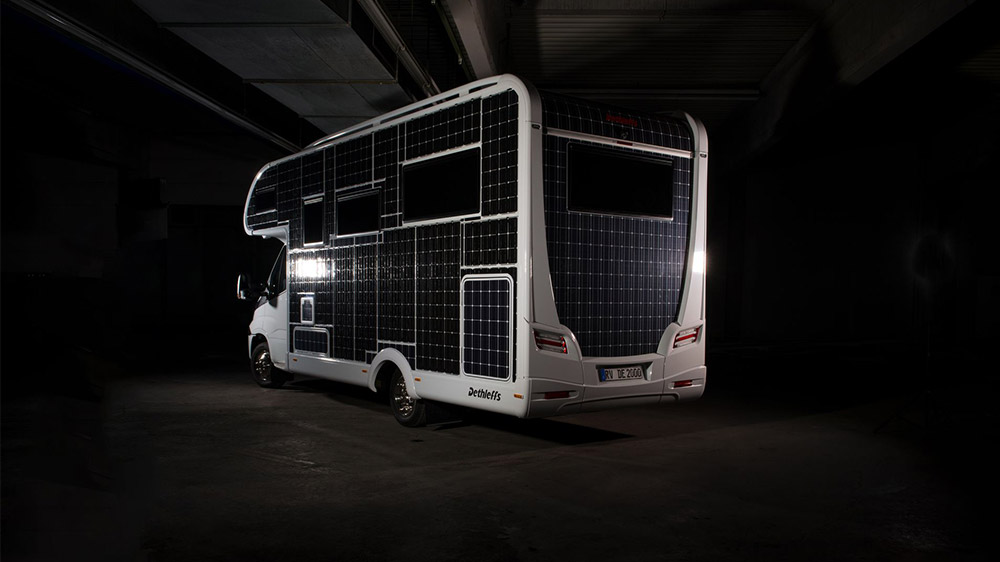 Dış bölümünün tamamı güneş paneliyle kaplanan elektrikli karavan: Dethleffs e.home