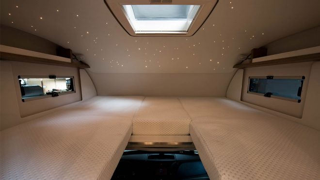 Güç ünitesi ve dış yapısıyla dikkat çekmeyi başaran e.home’un içerisi de lüks bir otel odasını aratmıyor.