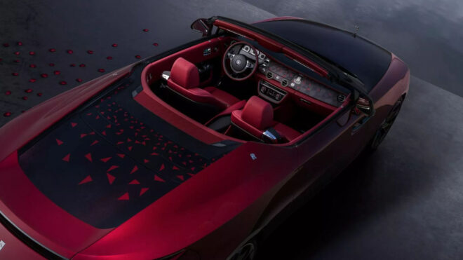 Rolls-Royce Coachbuild departmanı tarafından hazırlanan ve dört yıllık bir çalışma sonrasında hayat bulan Rolls-Royce La Rose Noire, dört benzersiz Rolls-Royce Droptail otomobil tasarımından ilki olarak göz alıcı bir “otomotiv sanat eseri” konumunda bulunuyor. İlhamını “Black Baccara” da olarak bilinen bir Fransız gülünden aldığı aktarılan araç, Rolls-Royce Sweptail ve Boat Tail’den farklı olarak Droptail, Cullinan, Ghost ve Phantom ile aynı “Architecture of Luxury” platformu üzerine kurulmuyor. Bunun yerine araçta çelik, alüminyum ve karbon fiberden yapılmış yeni bir monokok şasi kullanılıyor. Gücünü 6,75 litrelik çift turbo destekli V12 motordan alan araç, bu motor ile 593 beygir güç ve 800 Nm tork getiriyor. 0’dan 100 km/s hıza 5 saniyede çıkabilen ve maksimumda 250 km/s hızı görebilen La Rose Noire, gövdesinde özel bir boya çalışması taşıyor. Verilen bilgiye göre araç gölgede neredeyse siyah gibi görünüyor, güneş altında ise sedefli kırmızı boya göz alıcı bir parıltı ortaya koyuyor. Rolls-Royce bu özel boyayı iki farklı kırmızı tonunu birleştirerek üretmiş, en yüksek malzemelerin kullanıldığı aracın içinde de kırmızı ile beraber siyah detaylara ağırlık verilmiş.