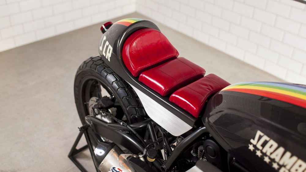 Mr. Martini’nin Peace Sixty2 yorumu ise bizi 60’lı yıllara geri götürüyor. Yeni karenaj tasarımıyla Scrambler’ın çıplaklığını biraz olsun örten Mr. Martini, yuvarlatılmış ve korumalı far tasarımı, parçalı deri selesi ve yatık oturuş pozisyonuyla Sixty2 modelini tam bir cafe racer formuna sokmuş.