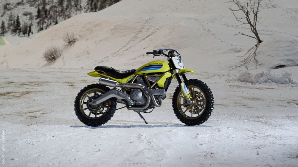 Son modelimiz Dario Lopez Studio’nun tasarladığı Artika isimli konsept. Sürüş fikri olarak aykırı dursa da tarz olarak Scramler ailesine yabancı durmayan Artika, bir arazi motosikleti olarak tasarlanmış. Sarı gövdesiyle dikkat çeken modelin dayanak noktası ise Ducati’nin 70’lerdeki kar savaşçısı Pantah.