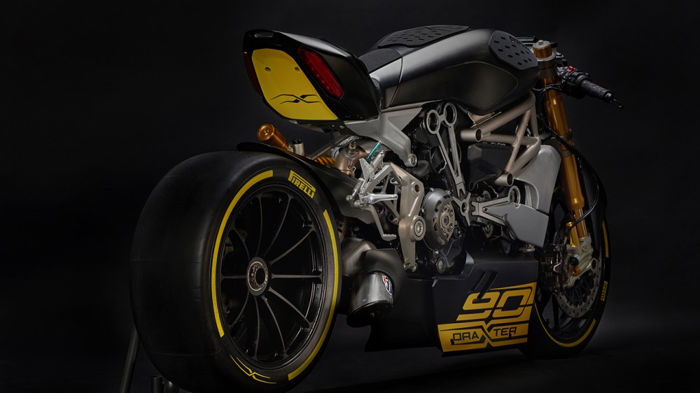 Adından da anlaşılacağı gibi bir dragster, yani kısa mesafeli yarış modeli olarak tasarlanan Ducati draXter, Ducati tasarım ekibinin gelecek vizyonunu gözler önüne seriyor. Ayrıca bir cruiser modelinden beklenmeyecek performansa sahip XDiavel bir pist aracı olsaydı nasıl görünürdü sorusunun da cevabı niteliğinde. Süspansiyon ve fren sistemlerini ailenin yarışçı üyesi Panigale Superbike’tan alan draXter, XDiavel’in 1.262 cc hacimli Testastretta DVT motorunu koruyor. Konsept modelin seri üretime geçmesi beklenmiyor.