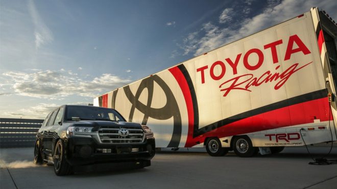 Geçtiğimiz kasım ayı içerisinde düzenlenen SEMA organizasyonu kapsamında karşımıza Toyota tarafından dünyanın enleri arasına giren bir SUV modeli tanıtıldı. Markanın yarış departmanı olan TRD tarafından geliştirilen projenin başrolünde Toyota ürün gamının en tepesinde yer alan Land Cruiser vardı. Land Speed Cruiser TRD adıyla tanıtılan modelin kaputunun altında kullanılan 5.7 litre hacminde twinturbo (Garrett) sekiz silindirli motor 2.000 beygirlik bir güç değeri üretiyordu. Land Speed Cruiser TRD’yi dünyanın enleri arasına sokan değeriyse erişebildiği maksimum sürat değeriydi. Saatte 355 kilometre gibi adeta bir süperspor otomobilini aratmayan bu değer büyük ses getirdi. Aradan geçen yaklaşık altı aylık zamanın ardından bu değerin üzerine çıkmak için tekrar canavarı asfalta çıkartan Toyota Racing ekibi elde ettiği dereceyle hem rekorunu kuvvetlendirdi hem de çoğu hiper otomobili geride bırakmayı başardı.
