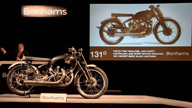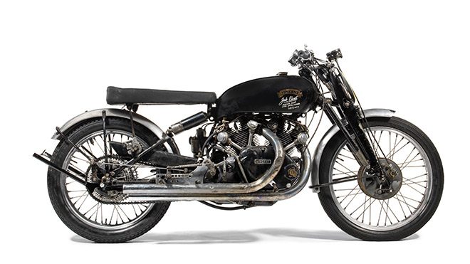 Geçtiğimiz günlerde düzenlenen Bonhams açık artırma etkinliğinde sahne alan 1951 Vincent Black Lightning, tamamen fabrika çıkış parçalarıyla yeni sahibine gidecek.