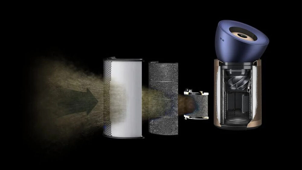 Dyson Hava Temizleyicilerde, üç filtre etkili iç mekân temizliği için bir araya gelerek 0,1 mikron kadar küçük partikülleri cam HEPA filtresinde hapsediyor, gaz kirleticileri yakalıyor, NO2’yi (azotdioksit) emiyor ve formaldehiti moleküler düzeyde sürekli olarak yok ediyor.