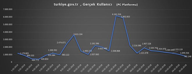 Dijital araştırma ve teknoloji şirketi Gemius’un şubat ayı verilerine bakılırsa Alt-Üst Soy Bilgisi sorgulama hizmeti e-Devlet’in kullanım oranını artırdı. 8 Şubat’ta kullanıma sunulan hizmet ilk gününde yoğun ilgi görmüştü. Normalde günlük 1 milyon ziyaretçiye hizmet veren sistem aniden 3 milyon kişinin talebiyle karşılaşmıştı. 15 Şubat’ta bu rakam bir kez daha ikiye katlandı. Soy ağacı sorgulama hizmeti sayesinde sistemi kullanan ziyaretçi sayısı 6.1 milyona ulaştı. Böylece turkiye.gov.tr kendi rekorunu kırmış oldu!
