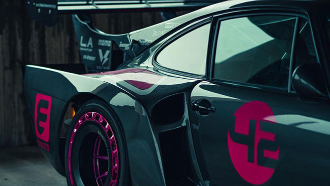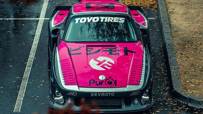 Karşınızda Porsche’ler konusunda tecrübeli Bisimoto tarafından hazırlanmış bir çok ama çok dikkat çekici Porsche 935 yer alıyor. Klasik 911 üzerine Kremer Racing firmasından gelen K3 body kit ile kurulan bu 935, farkını Bisimoto tarafından elektrikli hale getirilmiş olmasıyla koyuyor. Özetle geçmiş ile geleceği bir araya getiren isim, gerçekten dikkat çeken bir işe imza atmış durumda. Aracın bünyesinde denge kurmak adına öne ve arkaya yerleştirilmiş 32-kWh kapasitesinde LG imzalı pil paketi yer alıyor. Elektrikli motorlarıyla tam 637 beygir güç üreten araç, tasarımsal açıdan oldukça kaslı ve pembe rengin gerçekten belki de en iyi şekilde kullanıldığı araçlar arasındaki yerini alıyor. Özellikle yandan inanılmaz iyi görünen devasa rüzgarlığa sahip elektrikli araç, jantlarıyla da öne çıkmayı biliyor.