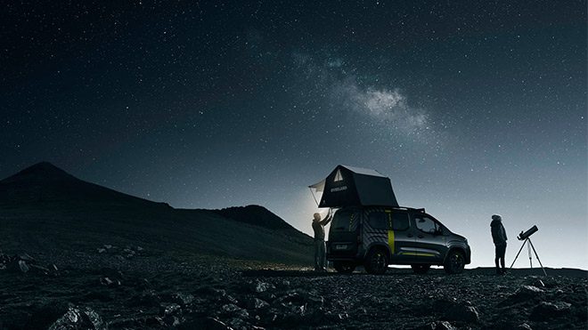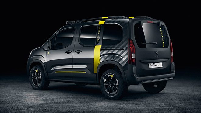 Standart Rifter versiyonuna oranla gövdesindeki koruma parçalarıyla dikkat çeken konseptte ek ışıklandırma panelinin de unutulmaması dikkatimizi çeken detaylardan birisi oldu. Ön bölümdeki mat siyah kaplama taş sıçramalarına karşı koruma sağlarken benzer amaçlar için yan ve arka kısımda da mat siyah kaplamalara yer veriliyor. Ön camın üstüne entegre edilen ve içerisinde 100 adet LED ışık bulunan 1,35 metre genişliğindeki şerit toplamda 300 W gibi başarılı bir ışık performansı sunuyor. Çadır kısmında, tavan raylarına sabitlenen Autohome imzalı bir parçaya yer veren Peugeot, rayların “City Crash Test”, standardına uygun olup her türlü yükü taşıyabildiğinin de altını çiziyor. BF Goodrich‘in arazi lastiklerinin kullanılması da hiç şüphesiz tasarım karakterine kadar arazi kabiliyetine de olumlu etki ediyor.