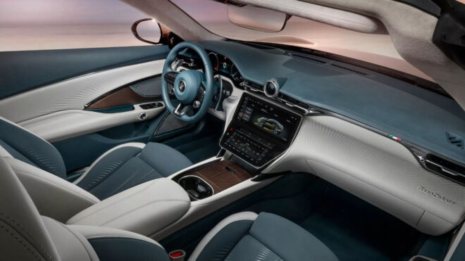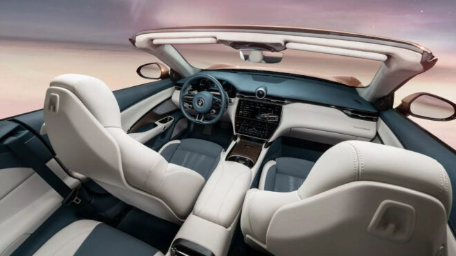 Maserati GranCabrio Folgore, markanın iddialı tasarım çizgisiyle etkileyici görünüyor ve içten yanmalı motora sahip Maserati GranCabrio‘nun gövdesini aerodinamik açıdan daha iyi hale getiriyor. İçten yanmalı modelde 542 beygir güç üreten bir V6 motora yer veren firma, elektrikli Folgore’de üç farklı elektrik motoruna yer veriyor ve toplamda tam 818 beygir güç ve 1.350 Nm tork sunuyor. 0’dan 100 km/s hıza sadece 2,8 saniyede çıkabilen araç, en üstte 290 km/s hıza kadar ulaşabiliyor. 92,5 kWh batarya paketi ile donatılan GranCabrio Folgore, 447 km’ye kadar bir menzil vadediyor. 270 kW DC şarj desteği olan ve uygun şartlar altında 5 dakikada 100 km gidecek kadar enerji depolayabilen araç, yüzde 20-80 arasının ise 18 dakikada tamamlayabiliyor. GT, Sport, Corsa, ve Maksimum Menzil adında dört farklı sürüş moduyla gelen dört çeker spor elektrikli, arkası çok geniş olmamasına rağmen dört kişilik bir seçenek ve özellikle güzel havalarda sessiz ancak hızlı sürüşler için harika görünüyor. Henüz kaça satılacağı bilinmeyen ancak 200 bin dolardan daha pahalı olacağı kesin olan GranCabrio Folgore, üç ekranlı bir kokpit alanı taşıyor ve direksiyonunda çok sayıda fiziksel buton barındırıyor.