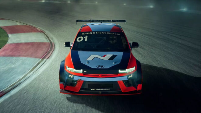 Hyundai IONIQ 5 eN1 Cup Car, Hyundai’nin E-GMP platformunu merkeze alan yarış odaklı bir model ve 84 kWh batarya özelinde 800-volt mimariyi temel alıyor. Önünde 222 beygirlik bir elektrik motoru, arkasında ise 378 beygirlik bir elektrik motoruna yer verilen araç, toplamda 641 beygir güç üretiyor. Yüzde 10-80 arasını uygun yüksek hızlı şarj ile sadece 18 dakikada doldurabilen model, performanslı pist sürüşlerine özel frenler ile donatılmış ve 18-inç jantlar ile onları saran “slick” lastikler üzerinde yol alıyor. Elbette aerodinamik olarak da geliştirilen yarış aracı, daha hafif ancak dayanıklı polikarbonat camlar kullanıyor ve normal IONIQ 5 N’teki sanal ses çözümlerinden arındırılarak kendisine özel bir ses ile geliyor. Bir yarış aracı olduğundan “roll cage” sisteminin ve çok noktalı emniyet kemeri sisteminin eksik edilmediği model, yarışa uygun bir direksiyon ile geliyor. N1 yarış sınıfında mücadele edecek bilgisi verilen model, yarış dünyasının elektrikli geleceği için güzel bir örnek daha oluyor.