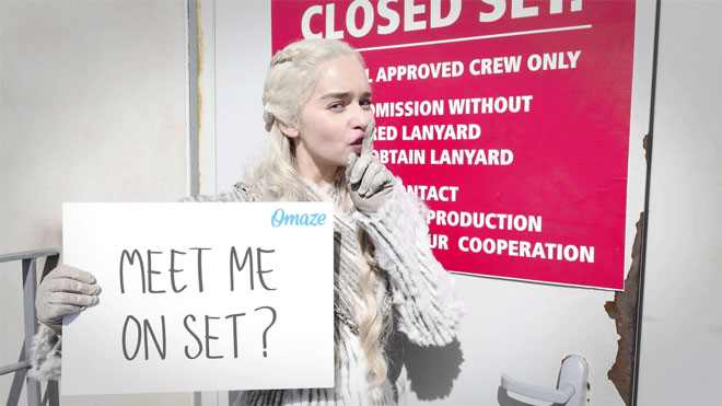 Omaze ile bir video hazırlayan Clarke, videonun başında hazırlanan bir tur çekilişinden bahsediyor. Çekilişe katılan hayranlardan birinin 8. sezon setini ziyarete gideceğini açıklayan Clarke, gelemeyecek olanlar için de seti gezdirmeye karar veriyor. Ancak işler istediği gibi ilerlemiyor. “Çok gizli” sekizinci sezon bölümleri öncesi tüm kapılar Clarke’ın yüzüne kapansa da karavanından küçük bir sahne görebiliyoruz. Hazırlanan bu mizansende Clarke’ın karavanı Jason Momoa fotoğraflarıyla dolup taşıyor. Clarke bize senaryodan bir sahne de okuyor ancak tahmin edersiniz ki bu sahne sansürleniyor. Hayli eğlenceli ve seti hiç göremediğiniz bu keyifli videoyu haberin devamında izleyebilirsiniz. Çekilişe katılım ise buradan yapılıyor.