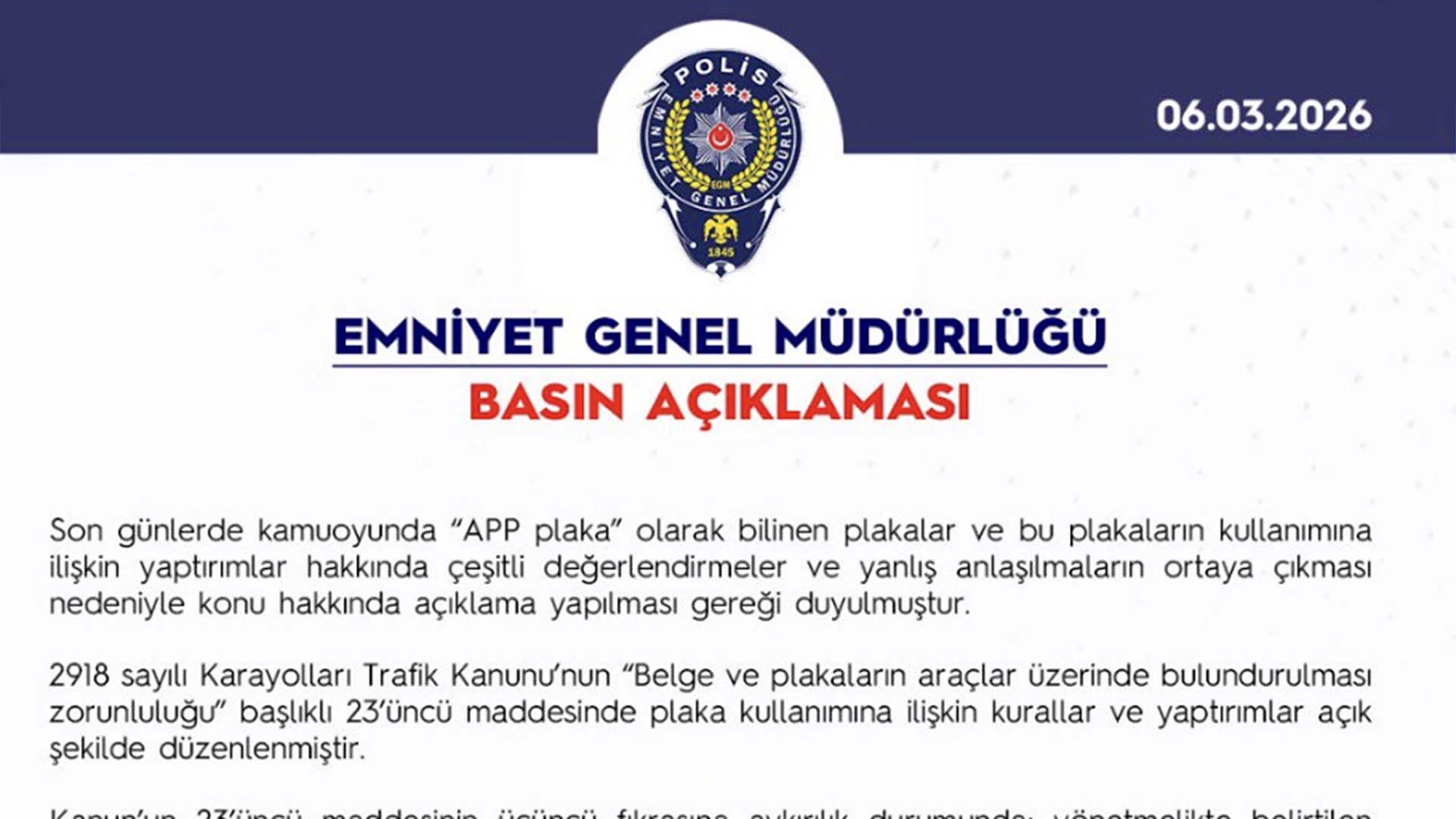 Emniyet Genel Müdürlüğü (EGM), resmi X hesabın üzerinden son günlerde gündemden düşmeyen “APP” plakalara yönelik bir açıklama yayınladı. “Son günlerde kamuoyunda “APP plaka” olarak bilinen plakalar ve bu plakaların kullanımına ilişkin yaptırımlar hakkında çeşitli değerlendirmeler ve yanlış anlaşılmaların ortaya çıkması nedeniyle konu hakkında açıklama yapılması gereği duyulmuştur.” diyen EGM, yaptığı paylaşımında şunlara yer verdi: “2918 sayılı Karayolları Trafik Kanunu’nun “Belge ve plakaların araçlar üzerinde bulundurulması zorunluluğu” başlıklı 23’üncü maddesinde plaka kullanımına ilişkin kurallar ve yaptırımlar açık şekilde düzenlenmiştir. Kanun’un 23’üncü maddesinin üçüncü fıkrasına aykırılık durumunda; yönetmelikte belirtilen nitelik veya ölçülere aykırı plaka takan ya da araç üzerinde bulunması gereken sayıda plaka takmayan sürücülere 4.000 Türk Lirası idari para cezası uygulanmaktadır. Ayrıca bu fıkra hükmü yeni getirilmiş bir düzenleme olmayıp 2016 yılından bu yana uygulanmaktadır. Öte yandan kamuoyunda sıklıkla “APP plaka” olarak ifade edilen durum ise farklı bir hukuki yaptırıma sahiptir.