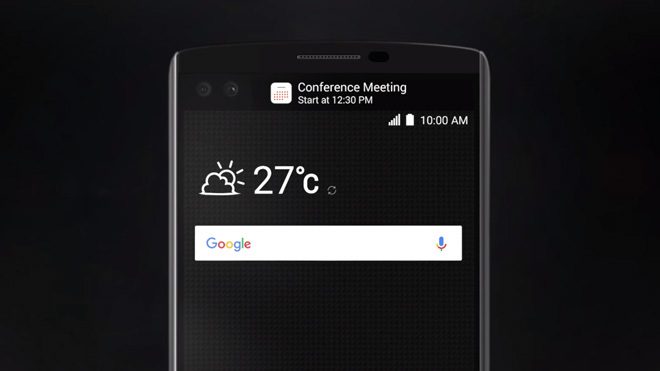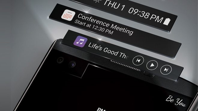Farklı bir model çıkartmak isteyen LG bu amacına çift ekranı bulunan LG V10 ile ulaşmıştı. Yukarıda bahsettiğimiz örneklerin aksine LG V10’un ön yüzeyinde iki ekran birden bulunuyor. Bilmeyenler için bunu MacBook Pro’nun Touch Bar’ına benzetmek mümkün. Bu ufak ekran aynı anda birçok işi halledebilmeye olanak sağlıyor. Devamlı olarak açık olan bu ekranda saat ve tarihi görebiliyorsunuz. Dinlediğiniz müziği asıl ekranı açmadan değiştirebiliyorsunuz. Bunun yanında bildirimlerinizi görebilir, arama yapabilir, flaş ışığını hızlıca açabilirsiniz. LG V20 ile geliştirilen bu özellikten LGV30 ile tamamen vazgeçildi.