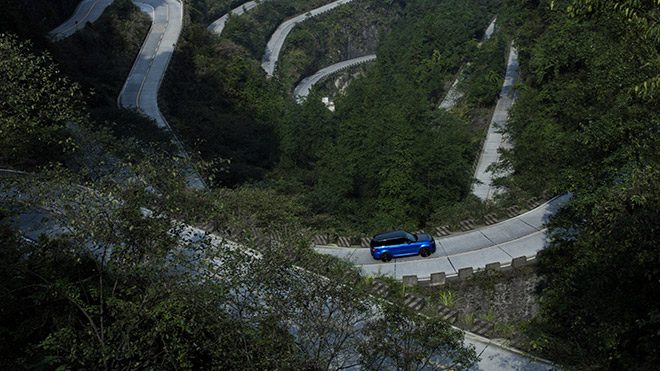 Eşsiz doğası ve 99 keskin virajıyla dünyanın en ünlü yollarından birisi olan “Tianmen Yolu“nda gerçekleştirilen bu denemede, Range Rover Sport SVR’ı hayli zor bir macera bekliyordu. Virajların yanı sıra zamanı da karşısına alan aracın Ferrari 458 Italia’nın 10 dakika 30 saniyelik derecesini geride bırakması için kaybedecek bir saniyesi bile yoktu. Kaputunun altında 5.0 litrelik V8 makine kullanılan SVR; 575 PS’lik güç, 700 Nm tork, 4,5 saniyelik 0-100 ve 280 km/s’lik maksimum hız değerine sahip. Bu değerler her ne kadar bir SUV için fazlasıyla etkileyici olsa da, söz konusu olan yolun dinamiklerini ele aldığımız ve karşısında bir süper sport otomobil olduğunu düşündüğümüzde sadece bu değerlerin yeterli olmayacağını görmek çok da zor değil.