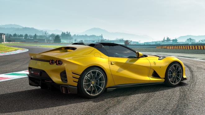 Yenilenen egzoz sistemiyle birlikte boruların arka bölümündeki tasarımını da revize eden mühendisler burayı yeni bir difüzörle tamamlamış. Bu yeni bölüm sayesinde standart 812’ye göre yüzde 25 gibi çok ciddi bir oranda daha yüksek yere basma kuvveti yakalanıyor. Competizione modellerinin gövdesinde yüksek hız limitlerinde açılarak aerodinamik olarak aracı rahatlatan aktif paneller de kendisine yer buluyor. Üretim adetleri ve fiyatı henüz açıklanmayan modeller, markanın yarış ruhunu sokaklarda temsil edecek.